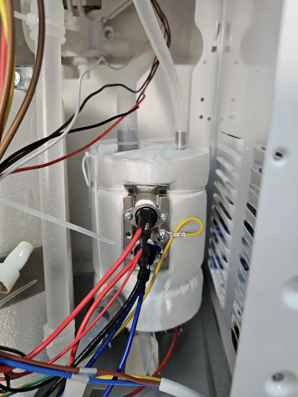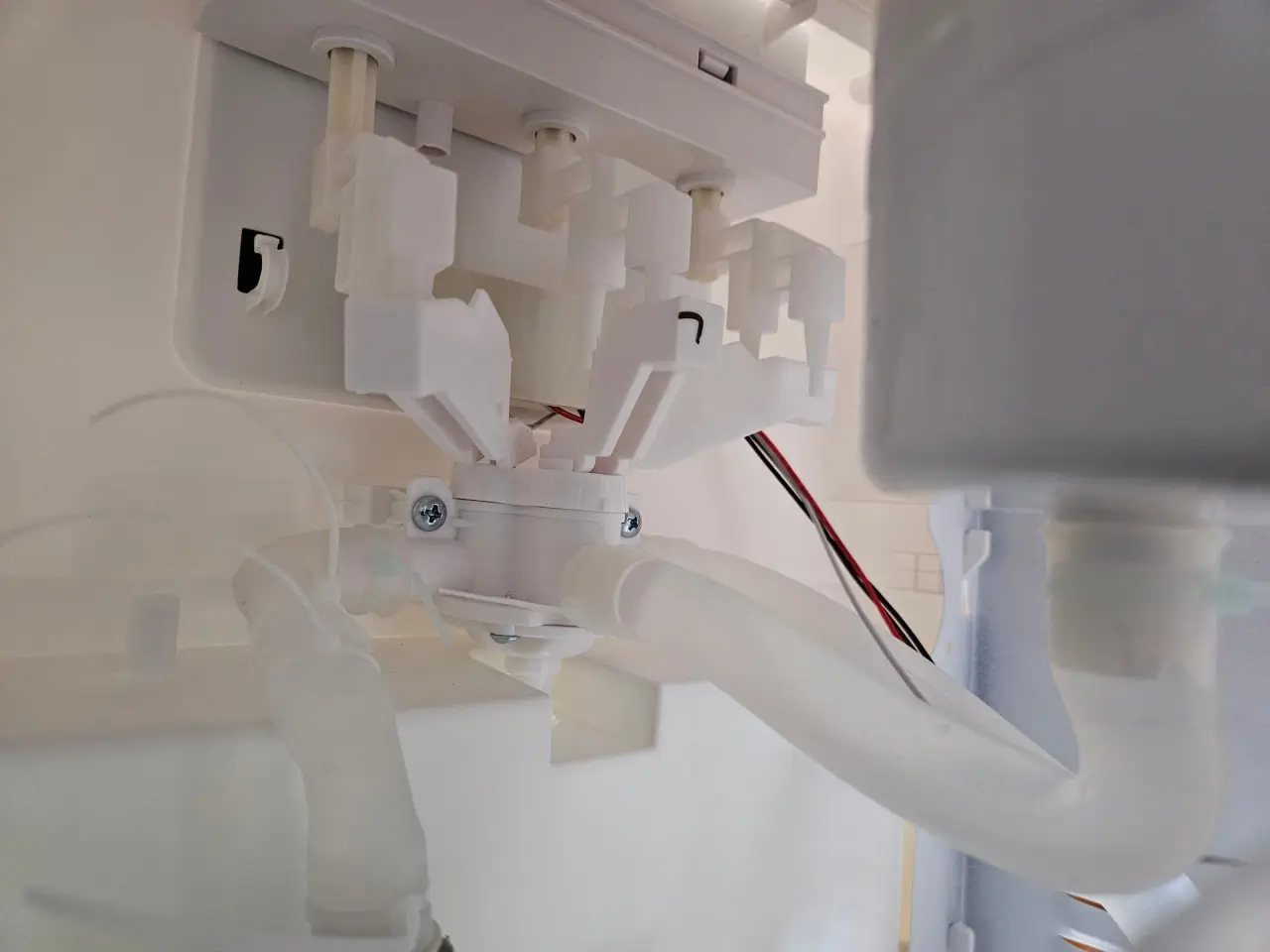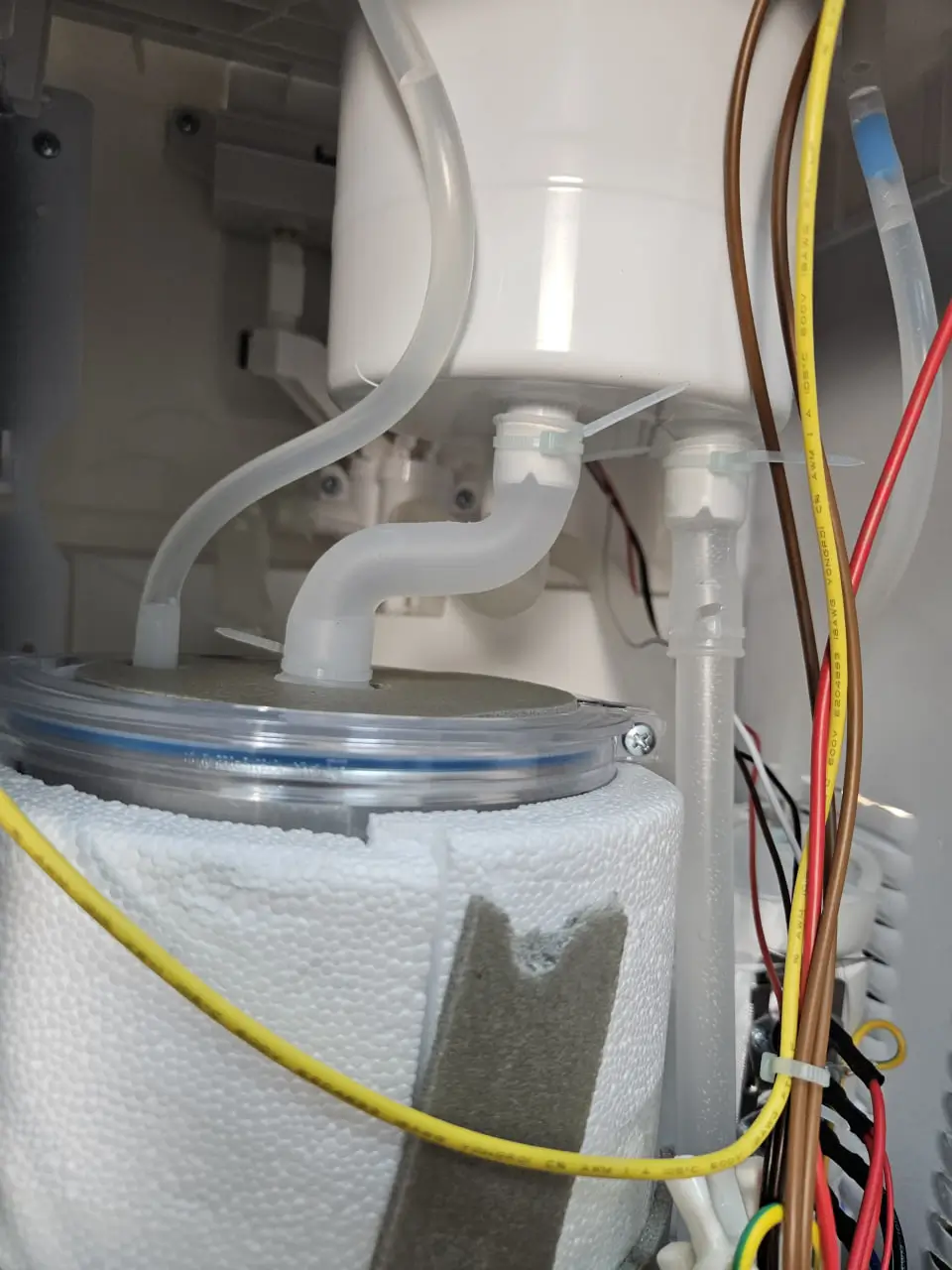 Также разобрали кулер изнутри и показали крупным планом, из чего он состоит, все детали, качество сборки, какие баки, резервуары, датчики, механизм крана, компрессор, термостат, а также как соединены между собой силиконовые трубки между баками с кранами и сливными отверстиями.