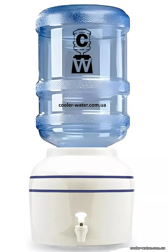 Диспенсер представляет собой керамический сосуд емкостью 4-6л, в нижней части боковой стенки которого расположен нажимной краник для подачи воды. Бутыль с водой переворачивается и горлышком опускается внутрь диспенсера, горловина которого имеет специальную форму и служит опорой для бутыли.Раздатчик нужно установить на подставку, стол, тумбу, подоконник, из-за низкого расположения краника.
