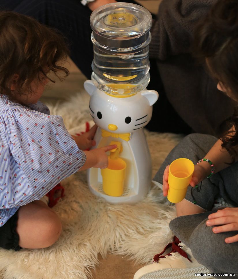 Теперь ваш малыш сможет сам себе наливать водичку. Этот кулер у вас и будет как игрушка и мини-кранчик. Ребенка этот процесс наливания водички очень увлекает. Конечно не вся вода у вас будет выпиваться, половина то на полу, то на ребенке, но зато ребенку весело! И при этом ребёнок выпивает достаточно чистой питьевой воды как и полагается выпивать в сутки для каждого ребёнка.