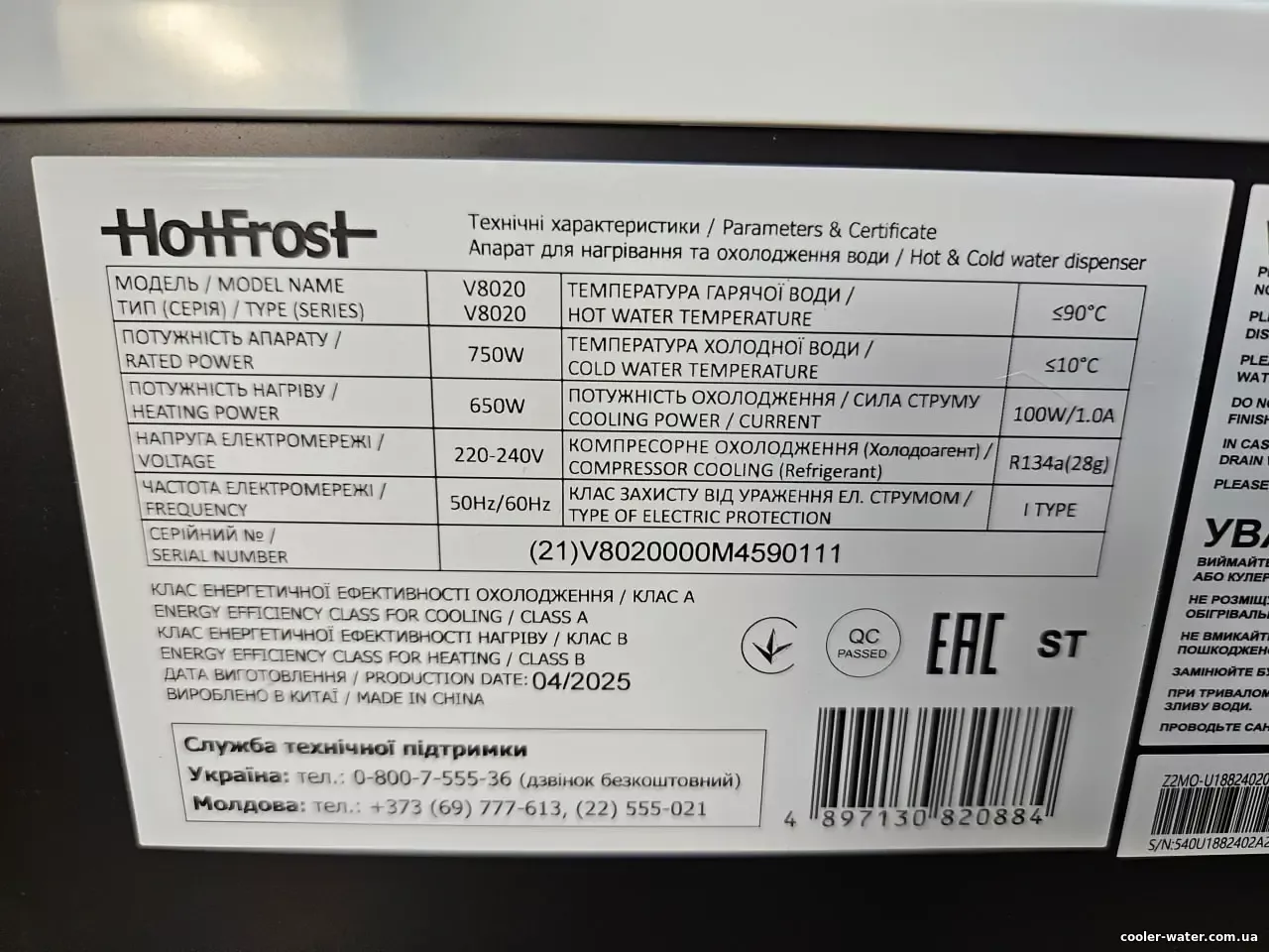 ► Кулер для води HotFrost V8020 купить Вы можете у нас по лучшей цене с доставкой по Украине и дополнительными подарками в виде воды 40л. в бутылях по 19л, сертификата на чистку первую и дополнительной гарантии 12 месяцев от нашего магазина Cooler-Water.