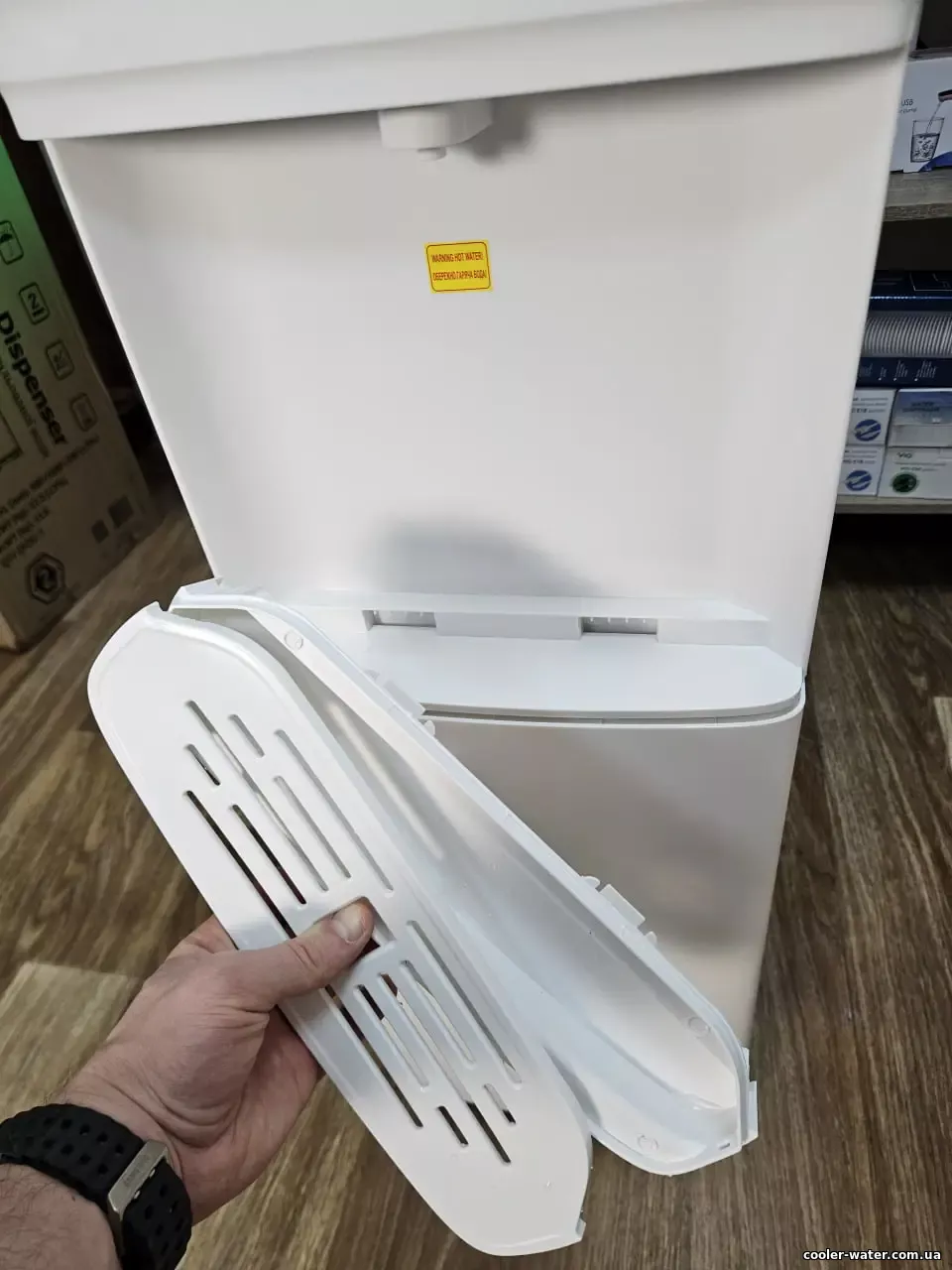 - Кулер станет прекрасным выбором как для дома, так и для офисного помещения или использования в заведениях общественного питания. Симпатичный дизайн квадратной формы выполнен в белом цвете, который легко впишется в ваш интерьер. Имеет индикатор на нагрев воды, который светится красным, когда кулер нагревает воду, и зеленым - когда охлаждает.