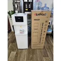 - Диспенсер HotFrost V8020 имеет компрессорный тип охлаждения (быстрый тип), которое отличается большой производительностью. Данный тип охлаждения выбирают в офисы (от 3 до 10 сотрудника) или домой. Температура холодной воды достигает 5-10 градусов за 20-40 минут (в данном случае компрессора), чего вполне достаточно для того, чтобы утолить жажду жарким днем, с учётом большого потока людей.