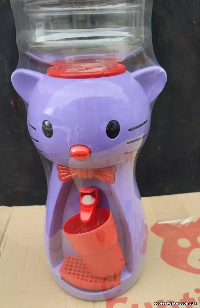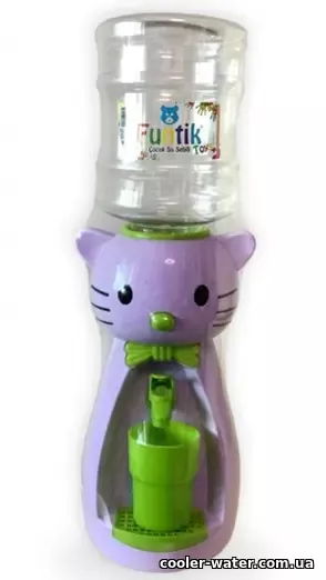 Детский кулер для воды Фунтик Котик (иногда называют китти) с: красным, фиолетовым, зелёным, бирюзовым, розовым, синим, зелёным, желтым стаканчиком и краником. Кулер можно использовать под любые напитки: воду, соки, компоты. Незаменим в детских садах, на домашних праздниках и при каждодневном использовании, на даче. Послужит оригинальным подарком на любой праздник. Прост и интересен в использовании, даже самый маленький обладатель кулера может самостоятельно им воспользоваться.