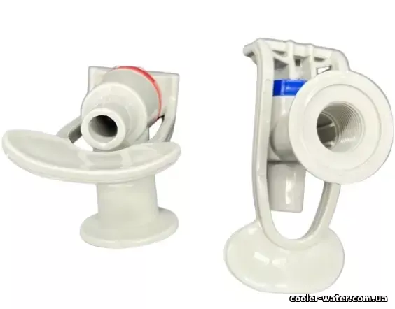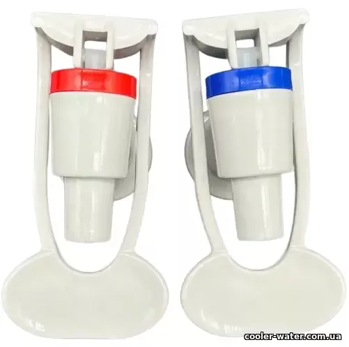 Кран на горячую(красный) и краник на холодную(синий) воду для кулера Хотфрост 161 с внутренней резьбой или "мама". Нажим кружкой. Цввет белый.
