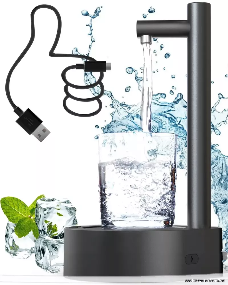 Помпа для воды электрическая A32 Black - с длинным шлангом 120см. Можно использовать помпу отдельно от бутыли. Ёмкость батареи (мА·ч): 1800. Зарядка USB Type-С