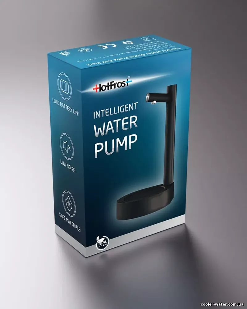 HotFrost A32 — инновационная электрическая помпа для воды предназначена для розлива воды комнатной температуры из бутылей 19 литров и меньшего объёма. Работает помпа от встроенного аккумулятора. Сочетает в себе стильный дизайн, удобство в использовании и надежную функциональность. Это идеальное решение для дома, офиса или любого другого пространства, где вы хотите получать чистую воду быстро и без лишних усилий.