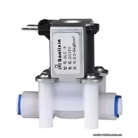 Чаще всего применяется в качестве входного или промывочного клапана в системах обратного осмоса с помповым комплектом, пурифайеры, водоматы. Устанавливается на трубку предварительно очищенной воды в любой точке движения воды ДО мембраны. Питание клапана подключается параллельно питанию помпы. Пока работает помпа, клапан тоже открыт и пропускает воду. Когда бак наполнен и датчик высокого давления остановил работу помпы, входной соленоид перекрывает подачу воды на мембрану. В отличии от традиционного четырехходового клапана, такой соленоид полностью исключает слив воды в дренаж после наполнения накопительного бака и остановки помпы. Описано традиционное применение соленоидного клапана в системах обратного осмоса с помповым комплектом. Так же возможно применение такого клапана в различных индивидуальных схемах очистки воды.