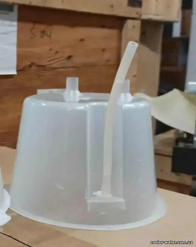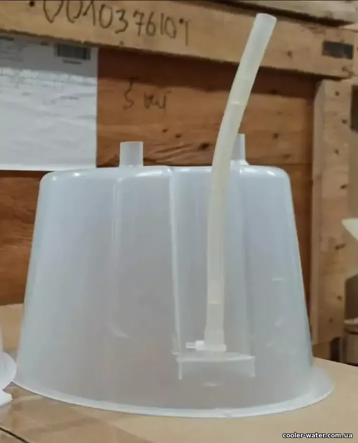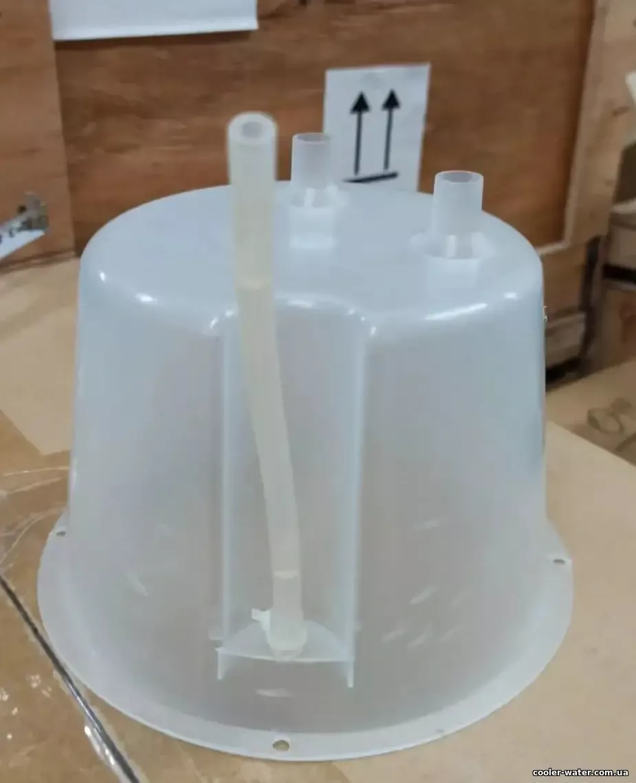 Накопительный бак для кулера воды Экотроник и Купер Хантер серии Ш1, Ш2. Часто его еще называют распределительный бак/накопитель воды, резервуар, держатель бутыли и так далее. Иногда бывает трескает по разным причинам, от старости, вода замёрзла и лёд деформировал бачок.